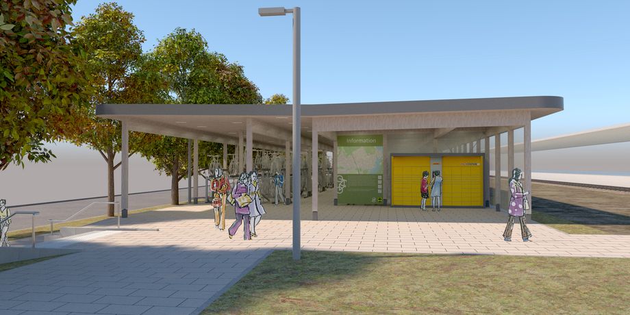 Neubau eines Fahrradparkhauses mit ca. 350 Stellplätzen, inkl. Sammelschließgaragen.